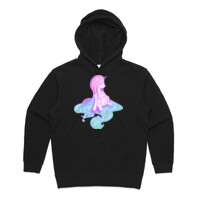 This adorable blue and pink unicorn is patiently sitting on this Hoodie.